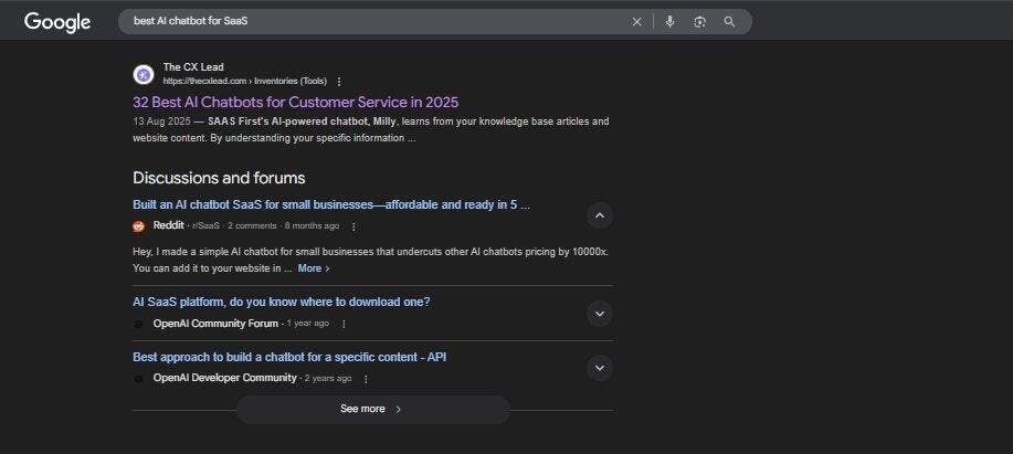 A blog post I wrote using Blazly is now ranked in the #1 position on Google for the 'best AI chatbot for SaaS' keyword.